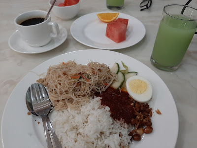 Nasi lemak hotel memang sedap, aromanya menggamit selera.